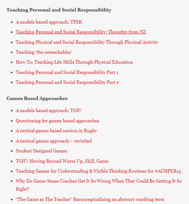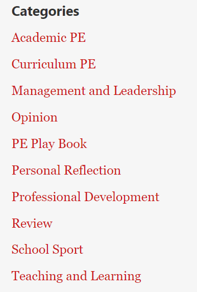 Wanted to build a blog to share what I am pondering about teaching PE but it was quite difficult. Categories and indexes could understand what this blog contains and is interested in.