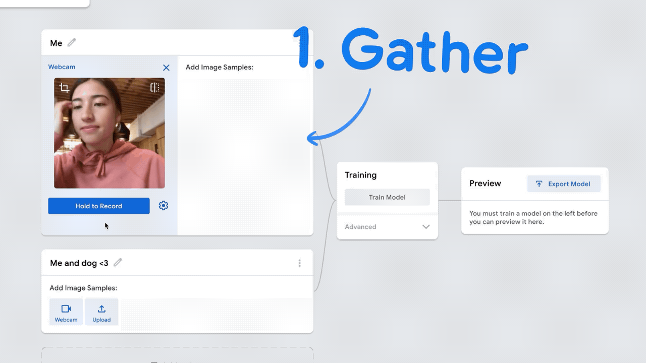 Teachable machine은 구글에서 기본적인 머신 러닝의 원리를 알려주기 위해 만들어졌다. AI를 이해하기 위한 가장 근본적인 접근으로서 "어떻게 머신러닝 모델은 서로 다른 것을 구분하는지"를 직관적으로 보여준다. 사진, 소리, 포즈라는 세 가지 데이터 종류를 넣을 수 있고, 서로 다른 것이 어떻게 다른 것인지 사용자가 클래스란 방식으로 구분하여 제공하면 모델은 그 내용을 반복적으로 저장하여 하나의 모델을 구성한다. 이제 이 모델은 새로운 데이터가 사용자가 구분한 클래스 중 어디에 해당하는지 확률로서 보여준다.