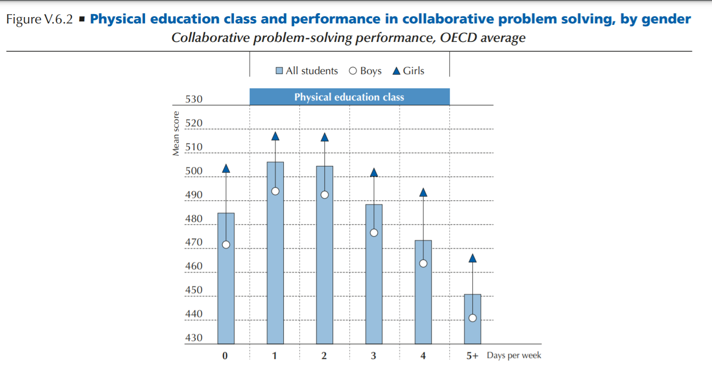 - 과학이나 수학 능력은 분명 문제해결력과 연관이 높음(OECD, 2014; OECD, 2017a). 따라서 인지영역의 영향력을 제거한 협력적 문제해결력 고유의 특성에 대한 탐색이 필요함.PISA 평가 보고서에서 체육 관련 내용